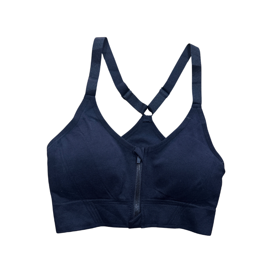 Top deportivo con cierre delantero. Confeccionado en algodón con lycra, de calidad premium. Posee breteles regulables para un mayor adaptabilidad. Trae taza desmontable